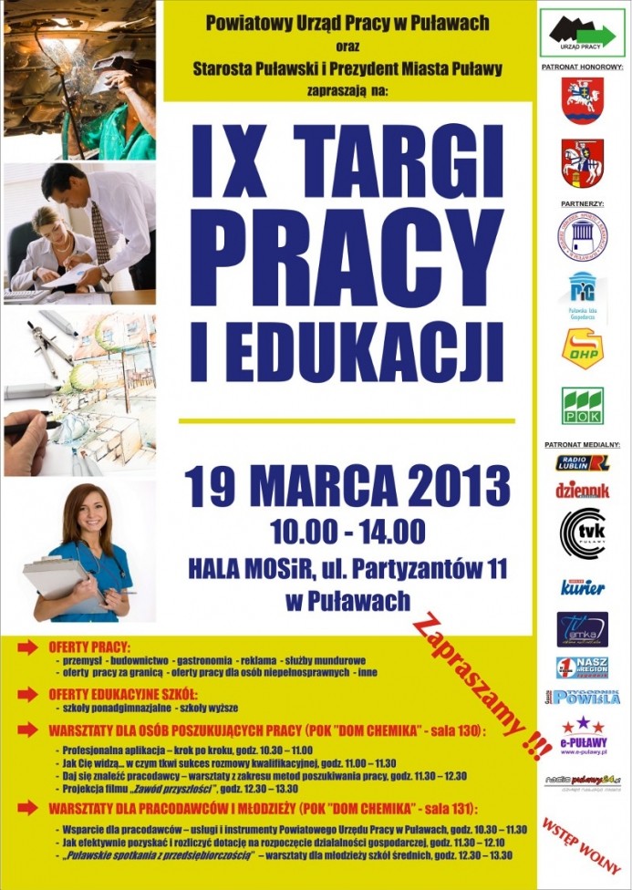 Serdecznie zapraszamy pracodawców, instytucje związane z rynkiem pracy oraz osoby bezrobotne i poszukujące pracy do wzięcia udziału w Targach Pracy. Zainteresowanych pracodawców i instytucje prosimy o uzupełnienie formularza zgłoszeniowego i przesłanie na adres PUP faksem pod nr 81 886 40 96, pocztą elektroniczną lub pocztą tradycyjną.