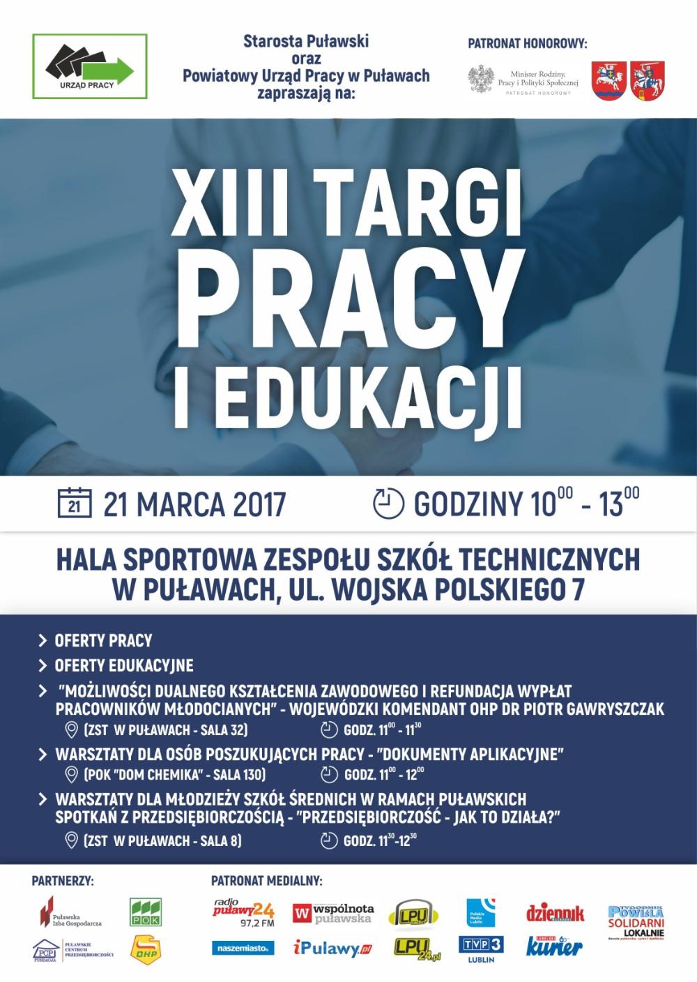 Jak co roku, Targi miały na celu promowanie nie tylko aktywnego poszukiwania pracy, ale również kształcenia na każdym etapie życia. W programie znalazła się oferta edukacyjna dla młodzieży szkół średnich, w postaci warsztatów organizowanych w ramach puławskich spotkań z przedsiębiorczością pod nazwą Przedsiębiorczość-jak to działa?, a także warsztatów dla osób poszukujących pracy (Dokumenty aplikacyjne), prowadzonych przez doradców zawodowych Urzędu Pracy w Puławach. Ponadto w ramach wykładu prowadzonego przez Wojewódzkiego Komendanta OHP dr. Piotra Gawryszczaka, można było poznać "Możliwości dualnego kształcenia zawodowego i refundacja wypłat pracowników młodocianych".